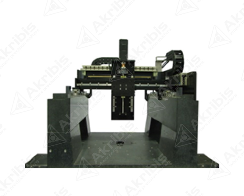 XY軸龍門(mén)雙驅結構,底部?jì)蓚€(gè)直線(xiàn)電機同步控制,