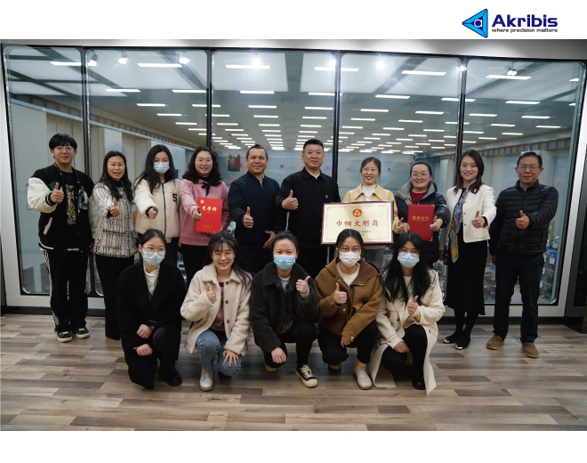 2023年3月24日上午 川沙新鎮黨委副書(shū)記齊寶華,婦聯(lián)主席金俐為雅科貝思財務(wù)部員工頒發(fā)"巾幗文明崗"獎牌,熱烈祝賀!